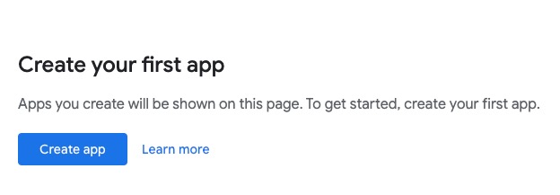 Once set up, on your Home screen click Create App and match the settings below, except for the name. You can change this name later.
